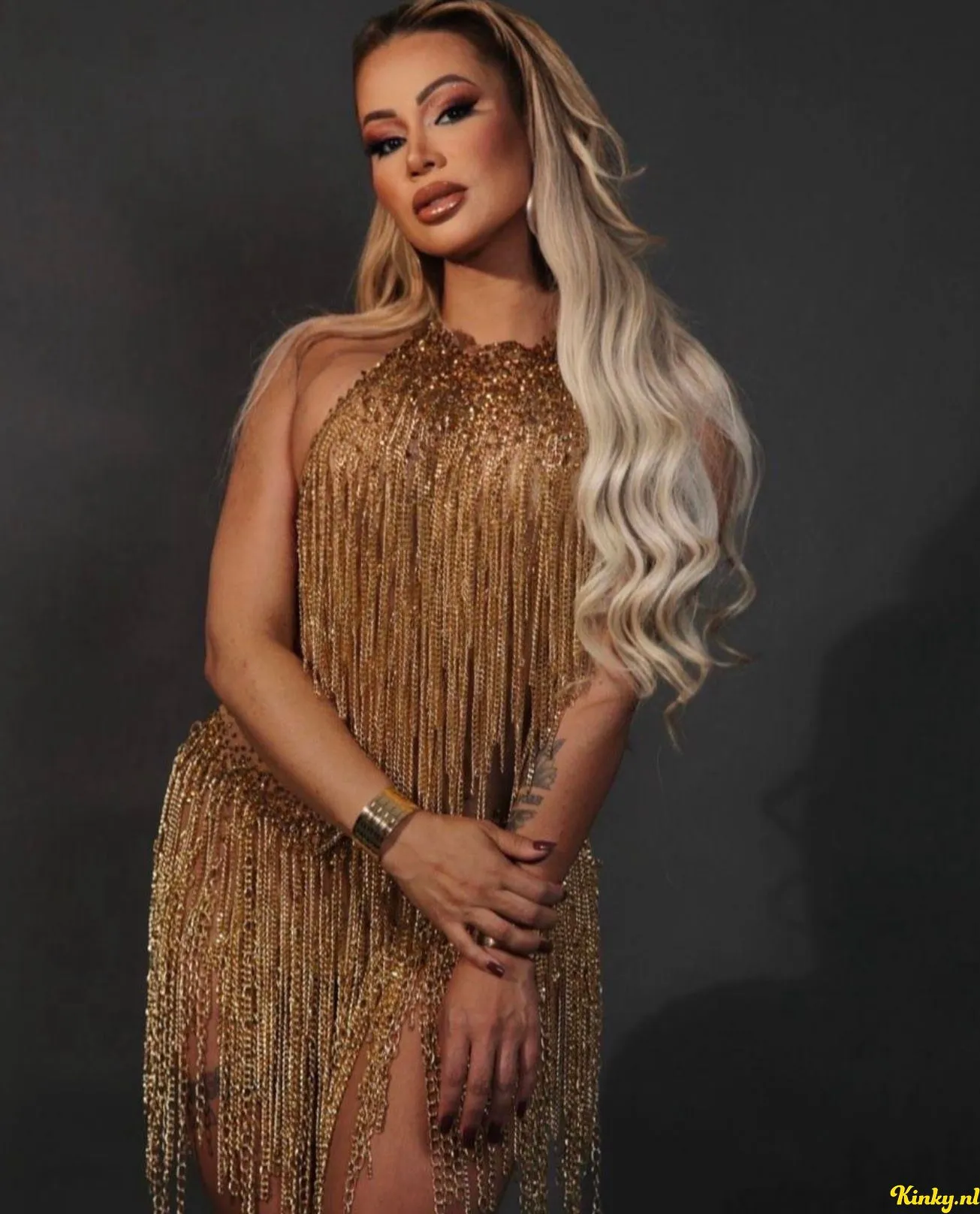 Het is de mooie dame van de foto, rond de 30 en 1,78 m. Platte buik en grote voorgevel. Ze heeft een mooie partij billen en houdt ervan als je er hard op slaat. Ze bouwt rustig de spanning op. Zoenen doet ze heerlijk (tz). Ook op je lichaam.
