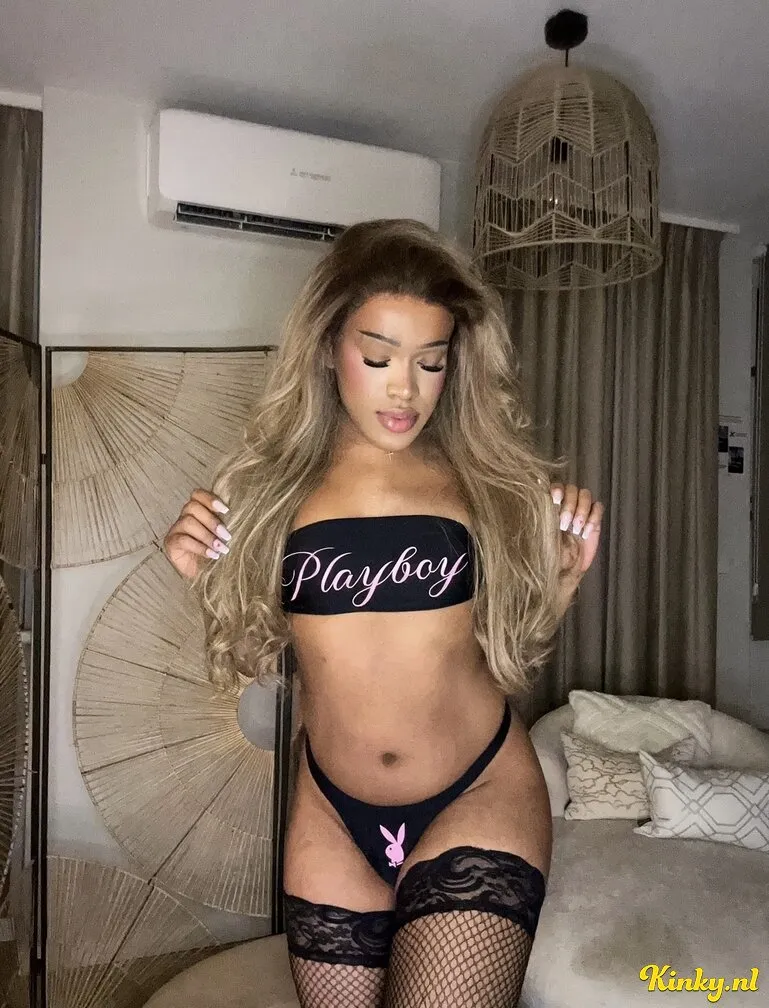 Dan ben je bij mij op het juiste adres, ik ben Melly, een sexy getinte shemale die dol is op lingerie, Met m’n blonde haar en m’n caramel lichaam breng ik graag jouw stoute fantasieën tot werkelijkheid 😋